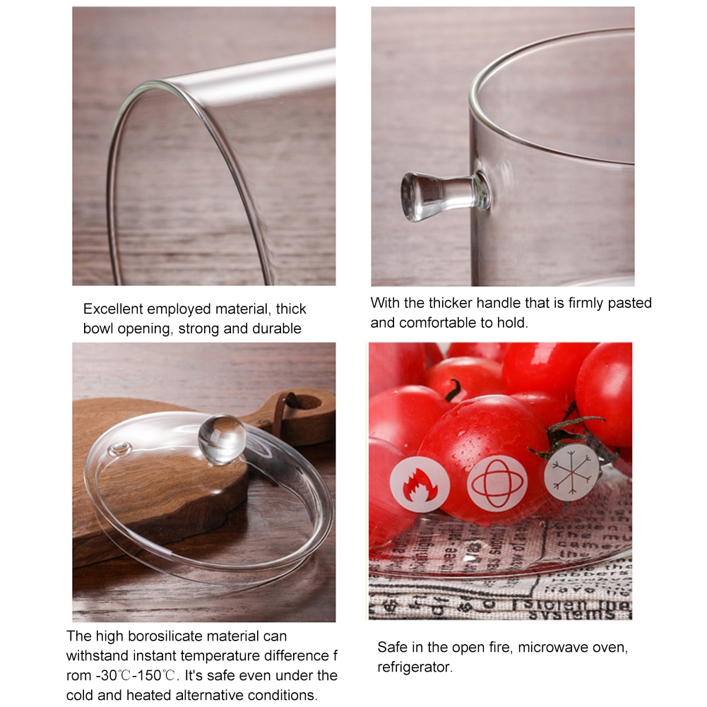 You can cook any food you want in this 1300ml High Borosilicate Clear Glass Pot! From ramen to soups to creamy dishes, you can rely on this pot! It comes with a lid and thick handles on the sides that are comfortable to grip. You can easily monitor the food as it cooks since you can see it clearly from the outside. It is less likely for your cooking to burn this way.