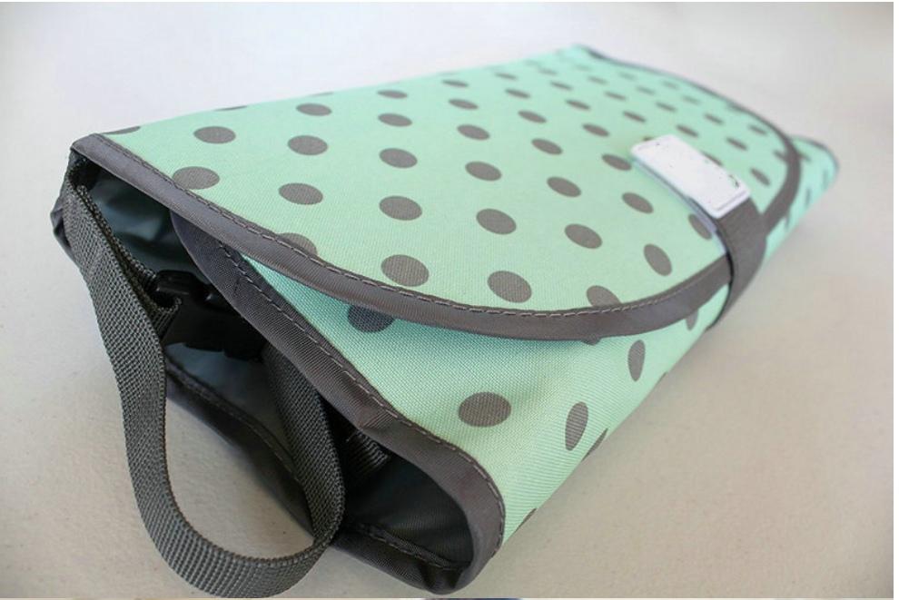 The easy to carry Baby Changing Station folds away into a compact rectangle and also includes an easy carry strap. Unrolled it makes the perfect baby mat. Great for use anywhere. The top is designed to fold back over separating babies hands from the changing process. Now you can keep busy hands away from creams and powders. The changing station?is waterproof and easy to clean.