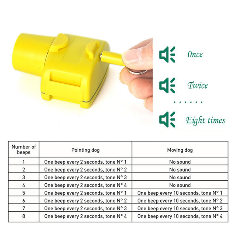 The dog hunting collar is for rescue dogs and hunting dogs. Think of it as a safety accessory because it aids you in locating your dogs. Its a must-have when you take them out in a hunting ground, into the woods, and also an unfamiliar place for the first time. It also has a built-in beeper that beeps one to eight beeps at a time. The collars bright yellow color also helps you locate your dog faster!